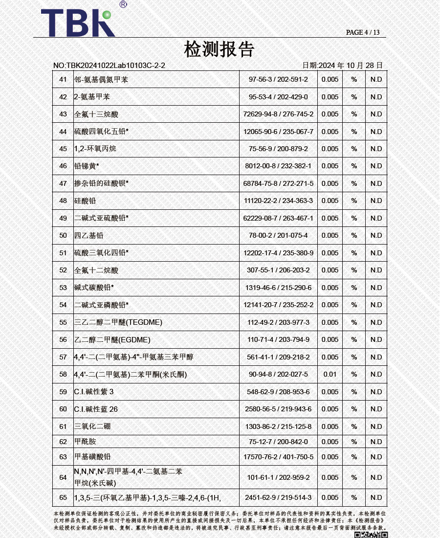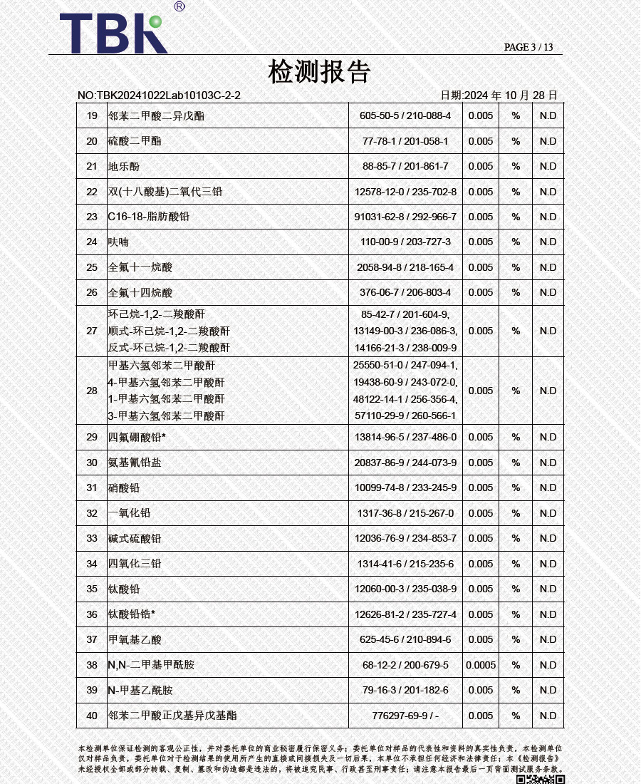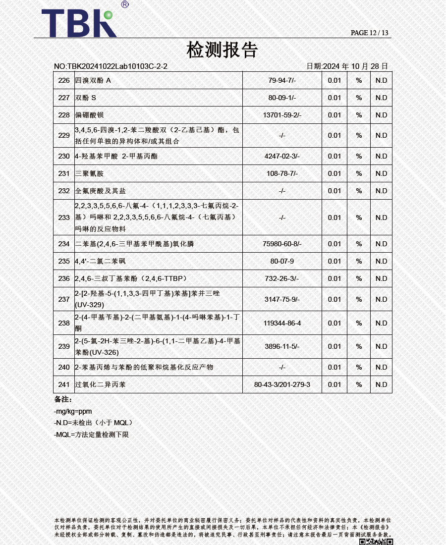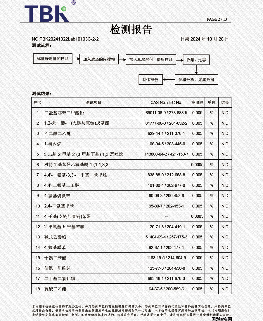 闪星环保阻燃剂欧盟REACH检测报告